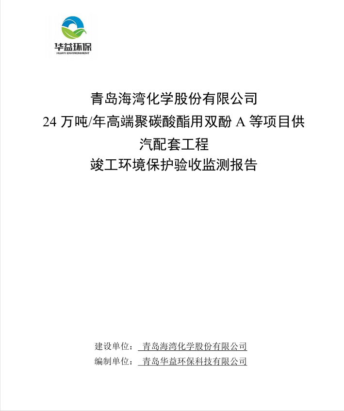 24萬噸高端聚碳(tàn)酸酯用雙酚A等項(xiang)目配套供汽工程(chéng)項💋目竣工環保驗(yàn)收監測報告 -公示(shi)版
